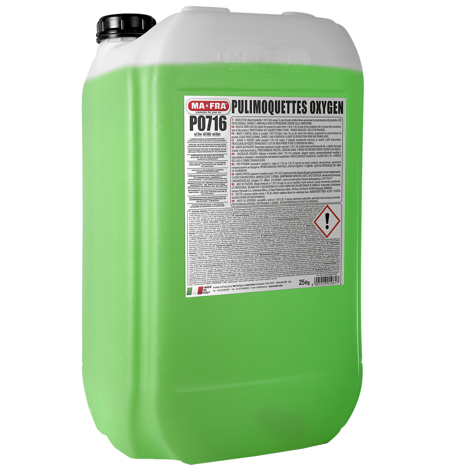 Parfümierter Textil-Reiniger, speziell für Samt und Alcantara. Anwendungsbereich: Sanftes hochkonzentriertes schaumgebremstes Reinigungsmittel, reinigt gründlich alle Textilarten, Samt und Fussmatten. Vorteile: Dank seiner Eigenschaften, erhält man beste Ergebnisse sowohl mit Extraktionsmaschinen, als auch bei Handwäsche, höchste Sauberkeit wird auch bei hartnäckigstem Schmutz garantiert, zurück bleibt ein angenehmer Duft. Anwendung und Verdünnung: Das Produkt in Wasser im Verhältnis von 1:10 bis 1:20 verdünnen, je nach Intensität der zu behandelnden Verschmutzung.