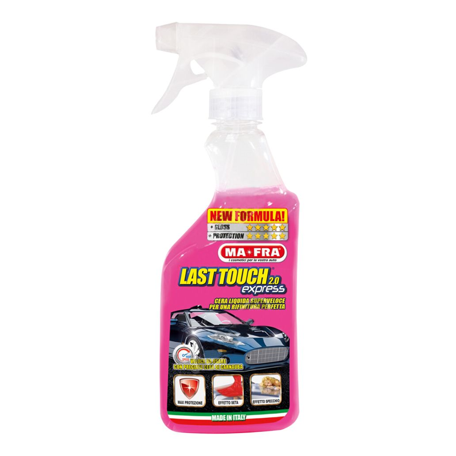 La cire liquide LAST TOUCH EXPRESS 2.0 garantit sans aucun problème, un nettoyage en profondeur, durable et brillant, même sous la pluie. Cette formule innovante de haute performance, sans silicone et riche en précieuses cires Carbauba donne à la carrosserie une finition augmentée de manière significative, qui empêche les dépôts de saleté garantit une protection de longue durée et laisse une surface soyeuse. Le véhicule peut être traité en quelques minutes, à la fois sec ou mouillé. Utilisez: LAST TOUCH EXPRESS en petites doses et à une distance de 20cm pulvérisation sur les zones à traiter arrosage. Distribuez le produit avec un chiffon en microfibres et séchez avec un autre chiffon sec.