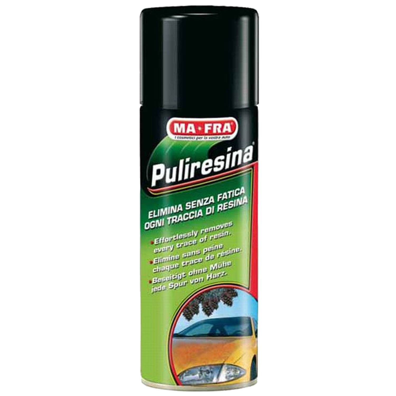 Puissant contre la résine. Il s’agit d’un des adversaires les plus tenaces contre lequel nous risquons, trop souvent, de nous acharner inutilement. La résine s’attache aux surfaces de notre véhicule et il est très difficile de l’éliminer. Les produits les plus classiques sortent trop souvent perdants dans la lutte contre cet ennemi absolument “naturel” mais si fort et résistant qu’il semble, parfois, presque invincible. C’est pourquoi les laboratoires Ma-Fra ont créé PULIRESINA, un produit dont la formule exerce une action spécifique contre la Résine. PULIRESINA dissout très rapidement toute trace ou résidu, y compris les gouttes cristallisées de résine de sapin. PULIRESINA exerce une action réellement efficace en maintenant la carrosserie, ou toute autre partie qui aurait été attaquée, parfaitement brillante et à l’abri de la corrosion. La formule de PULIRESINA est, en effet, basée sur une nouvelle famille d’agents tensioactifs et elle agit très délicatement sur les parties traitées, qu’il s’agisse de tôle, de plastique, etc., alors qu’elle n’est vraiment puissante que contre l’agresseur.