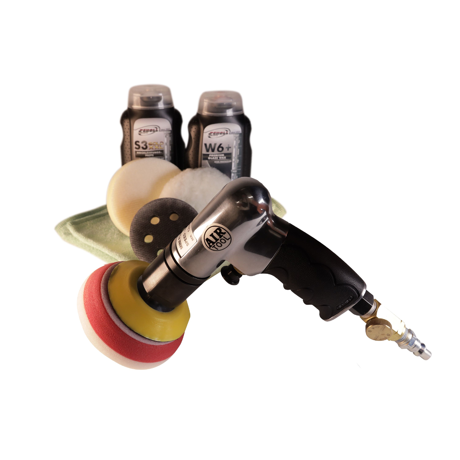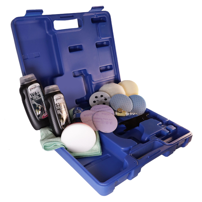 La mini machine à polir pneumatique a un plateau de polissage spécial particulièrement adapté aux petites surfaces et aux surfaces arrondies. L’ensemble du matériel pour un polissage dans les règles de l‘art est rangé dans une valise pratique.