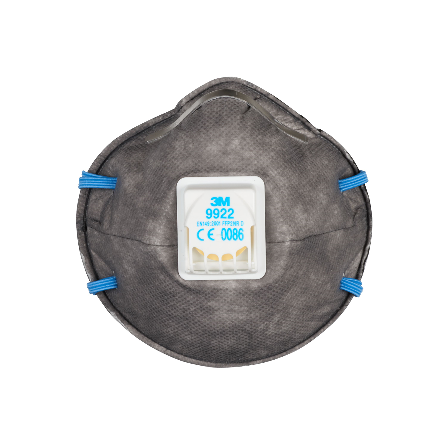 Le masque antipoussières spécialisé 3M 9922 est le respirateur ultraléger FFP2 pour la protection contre les poussières, les brouillards, l'ozone et les gaz. Il présente une forme convexe avec une barrette nasale et deux sangles pour un ajustement confortable sur une variété de formes de visage. La couche de charbon actif atténue les odeurs désagréables, la soupape 3M Cool Flow limite l'accumulation de chaleur, et les élastiques tressés à code couleur facilitent l'identification rapide du niveau de protection.